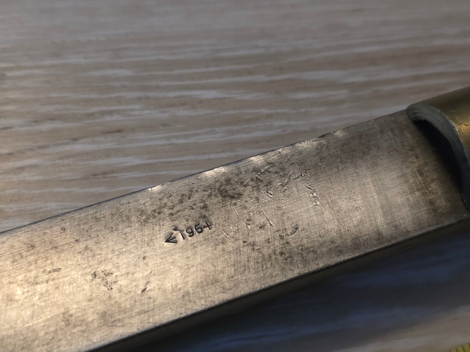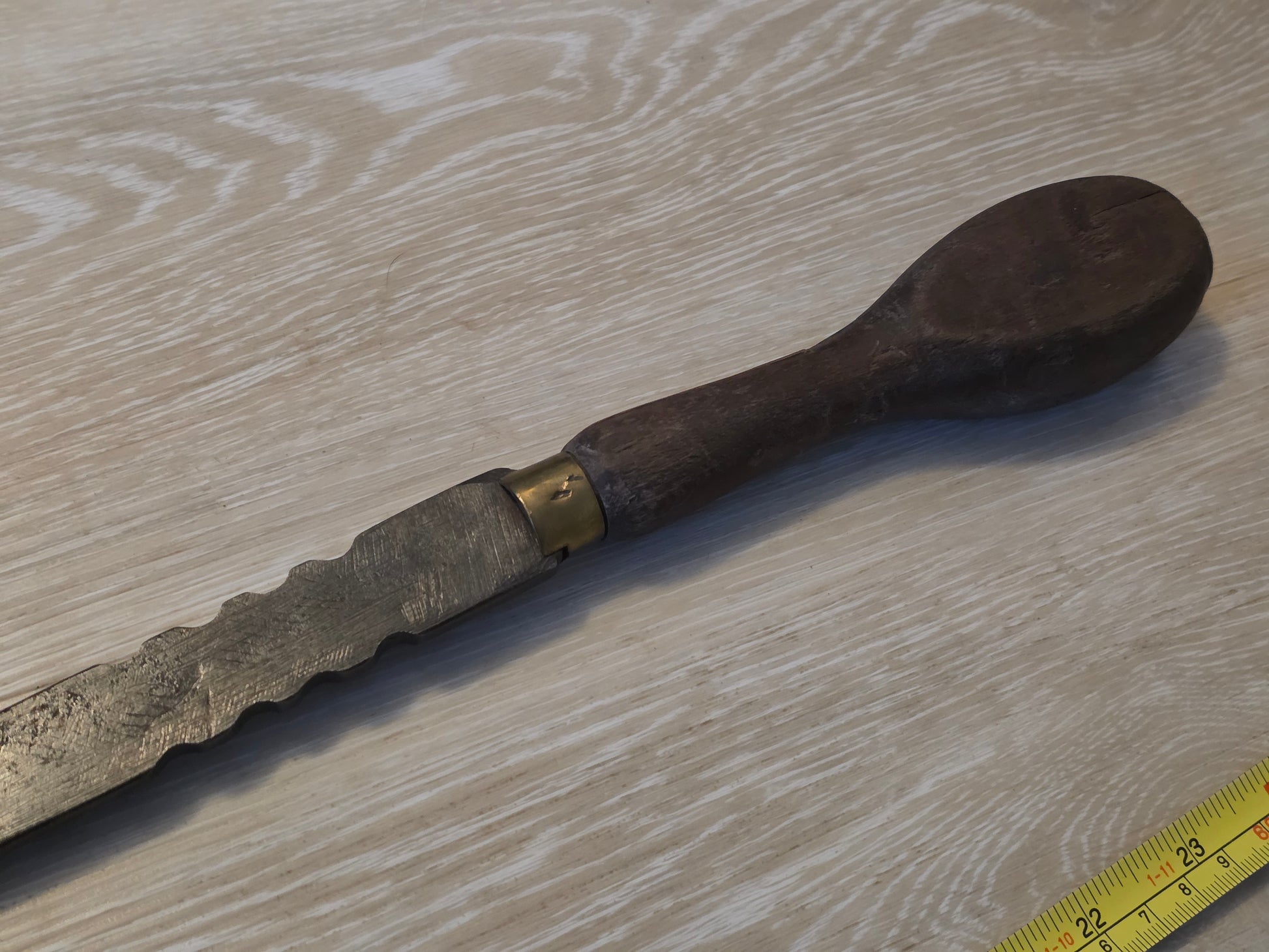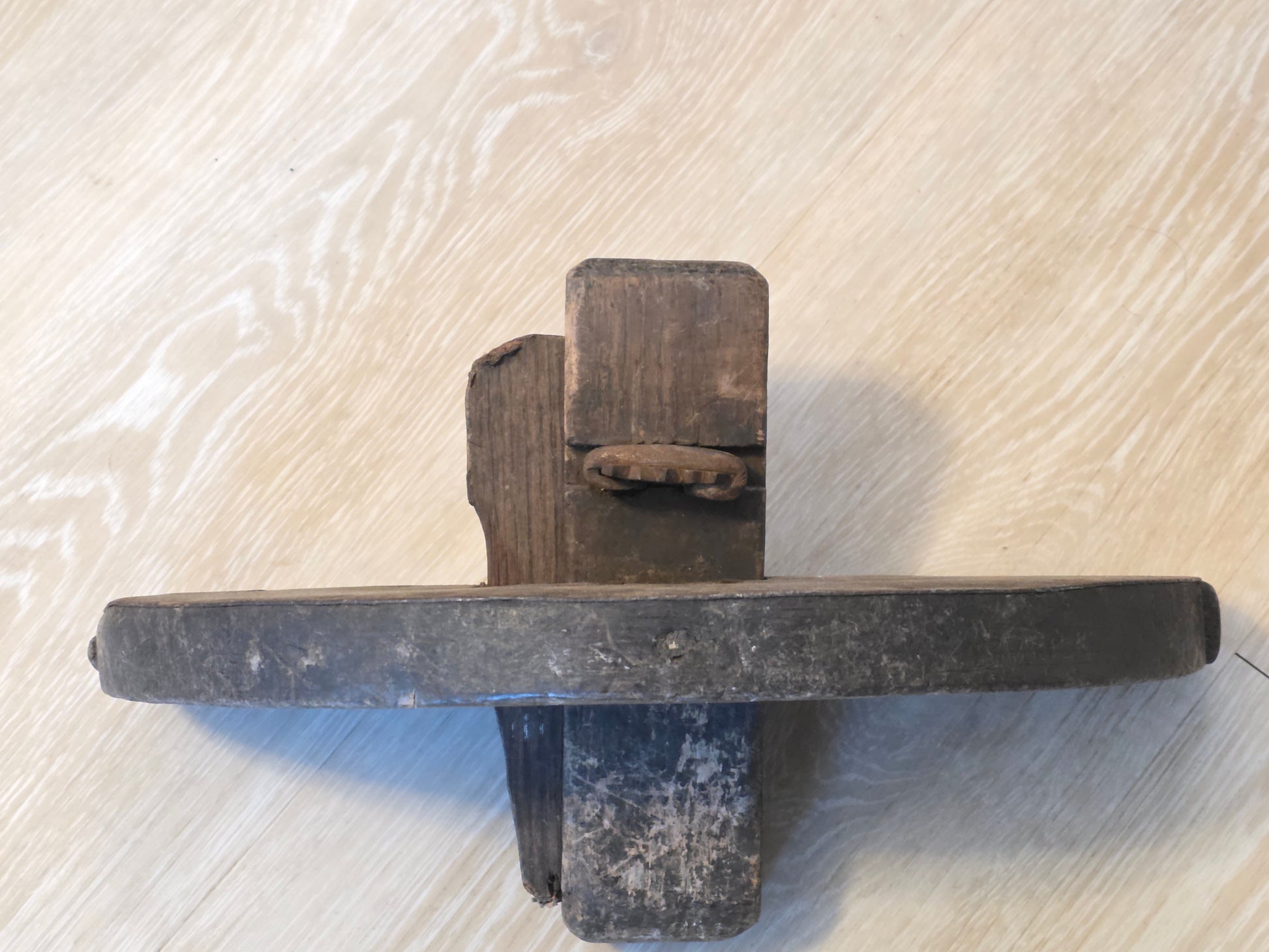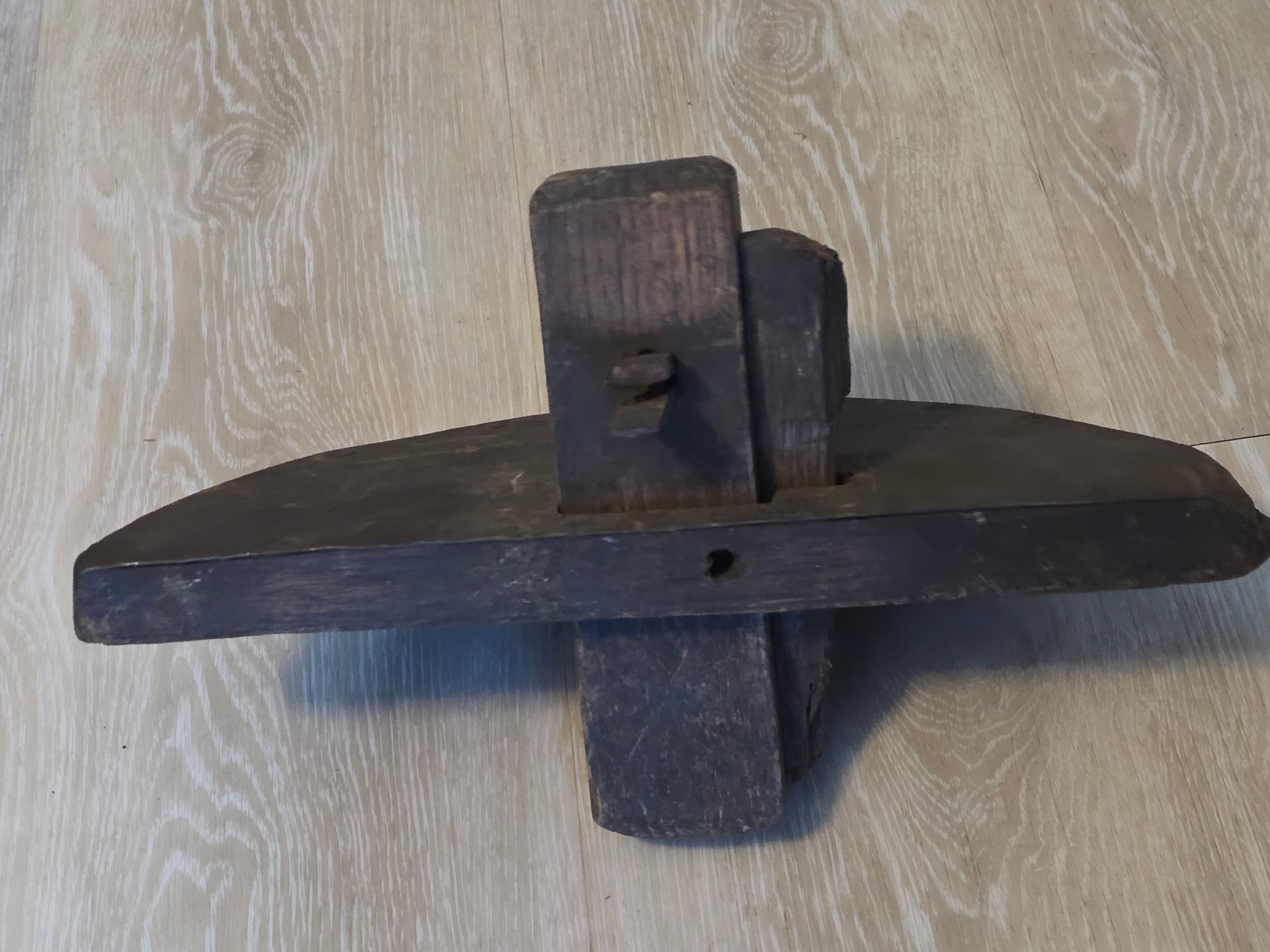 Edged coopers croze. Good condition overall. Has a metal skin added to the cut side.