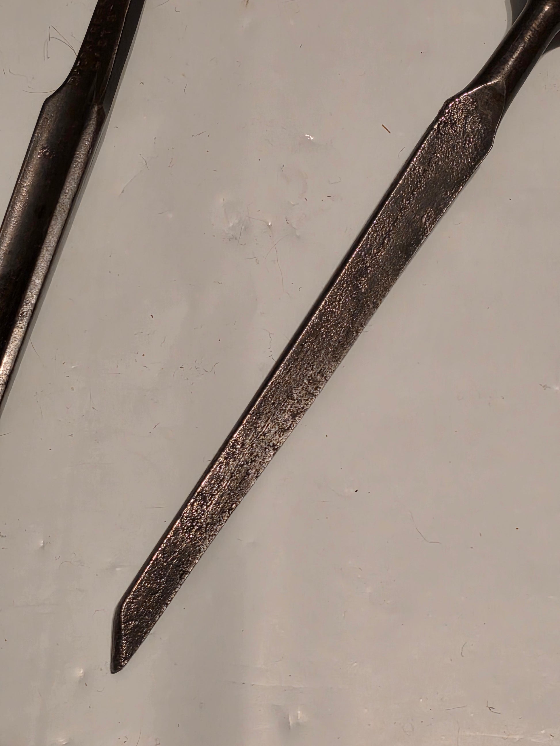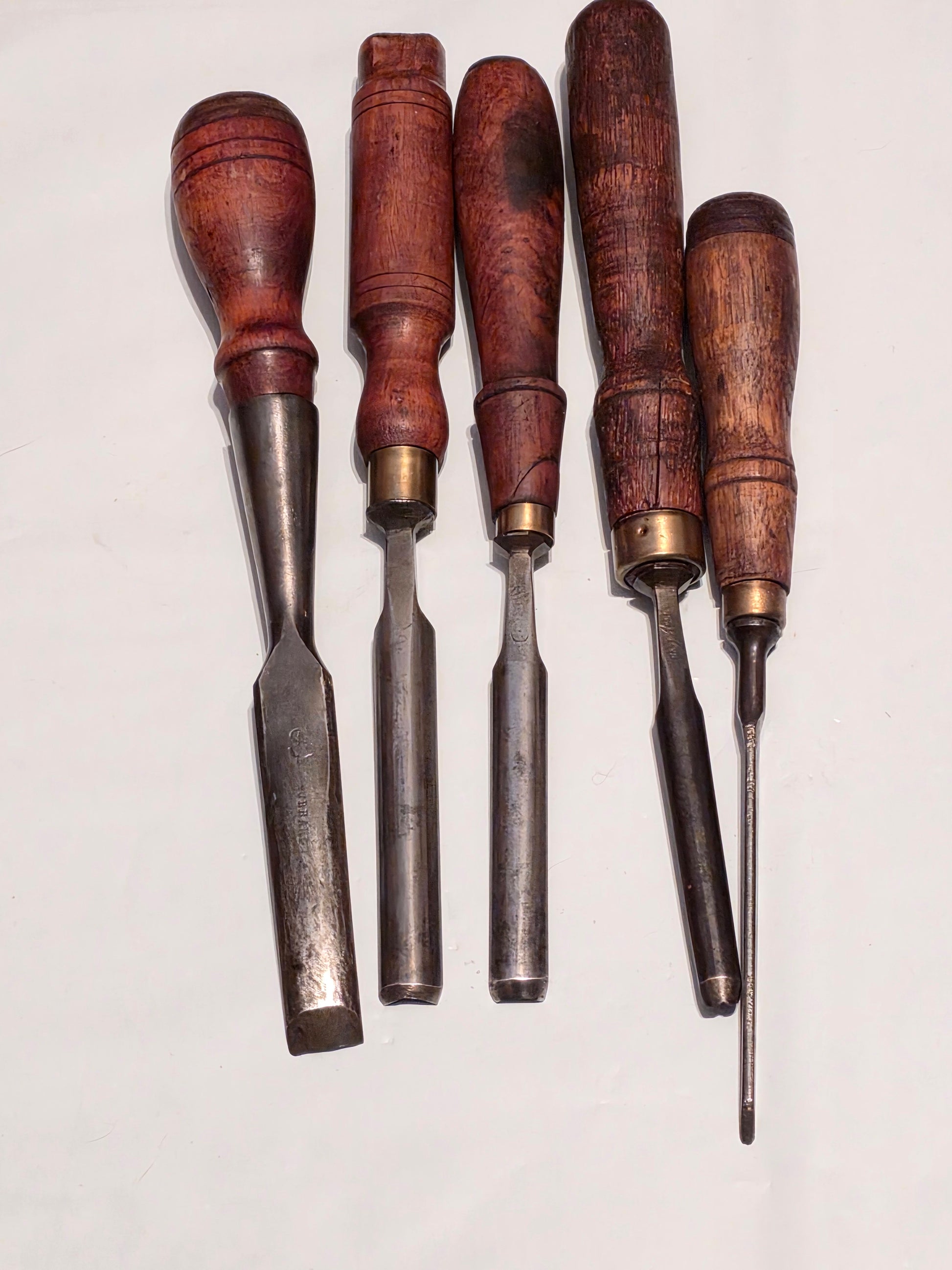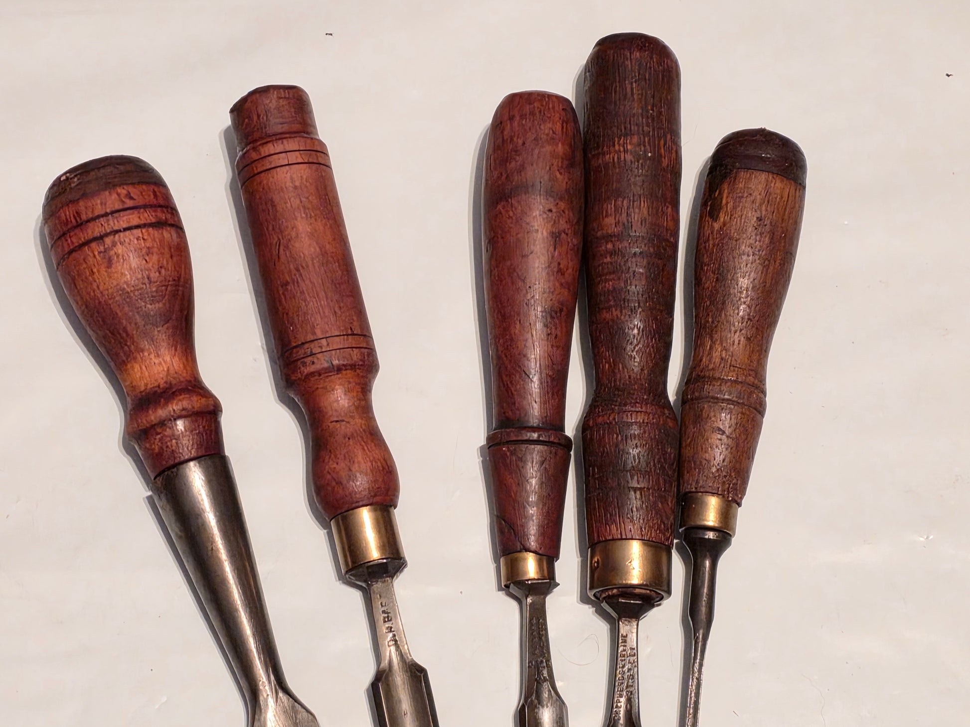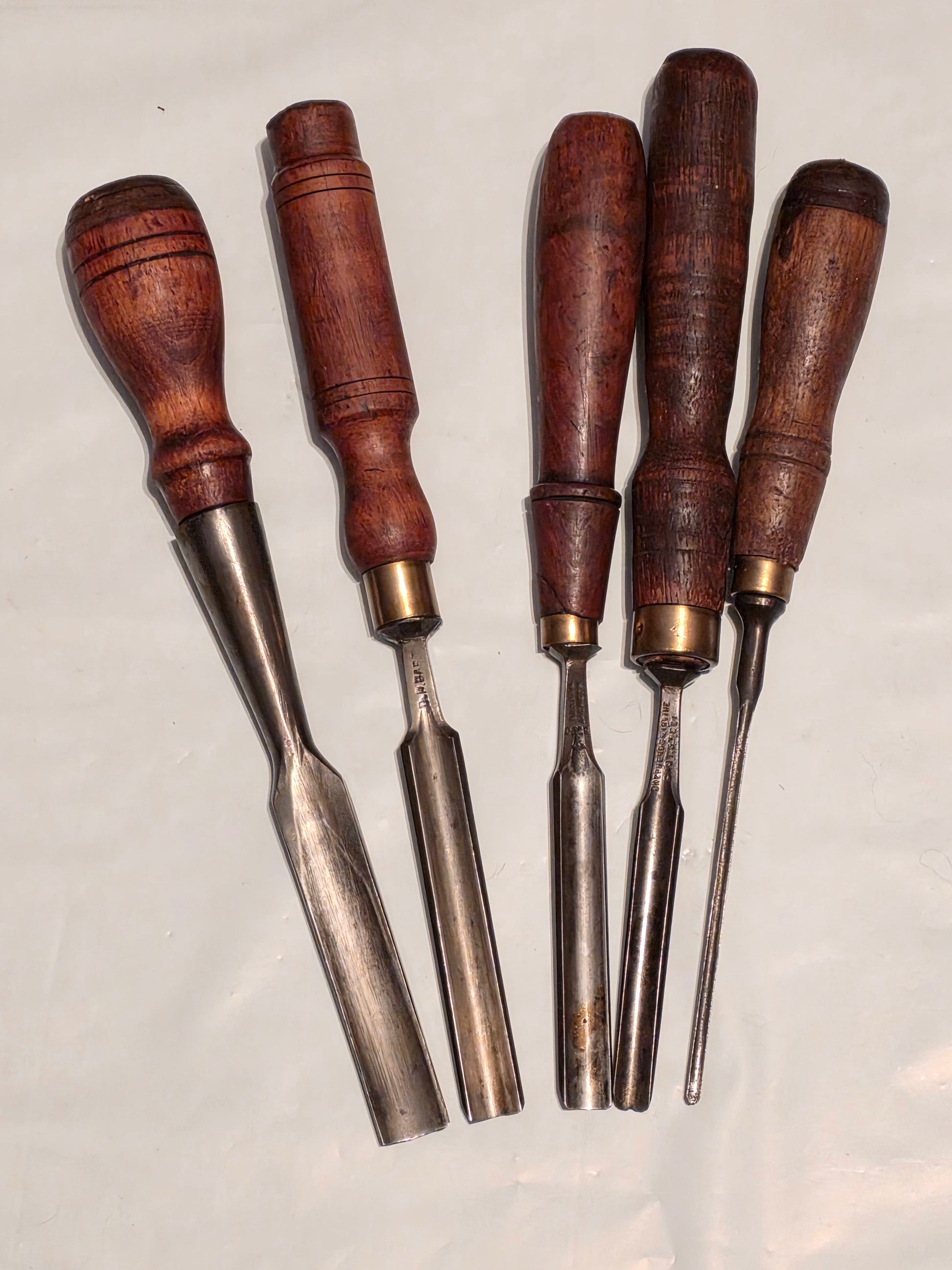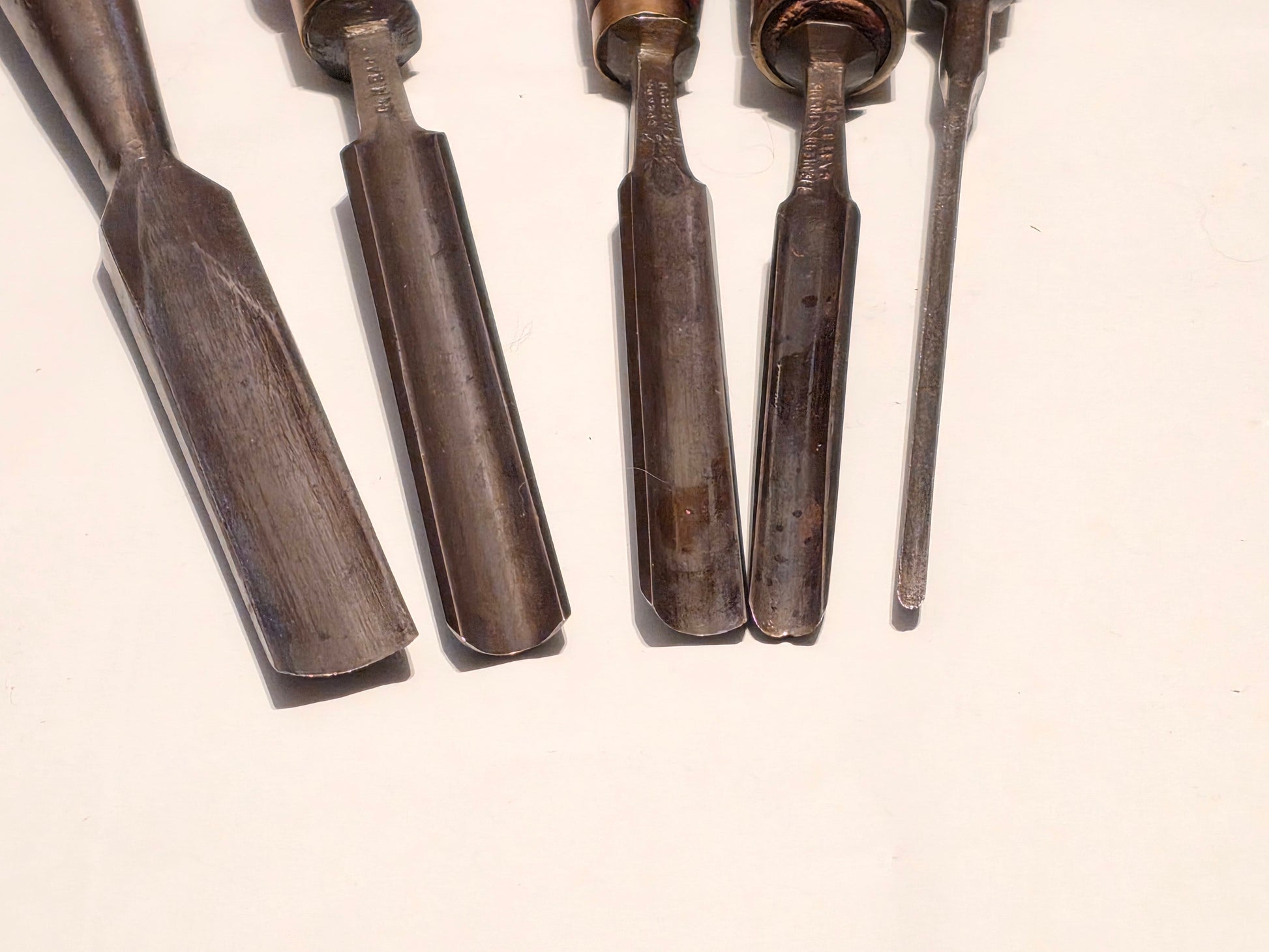 Good little grouping of user grade gouges. Smallest has some pitting but measures ~1/8" largest is 5/8"(bench chisels turned into gouge). None are perfect but all can be usable.